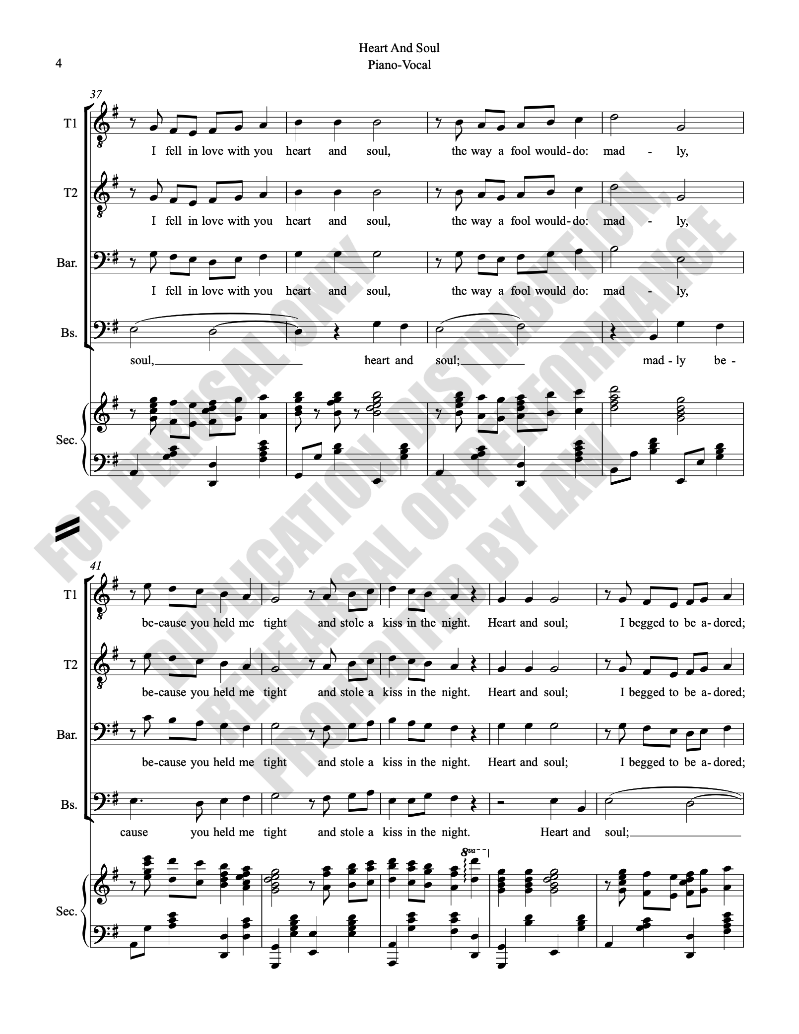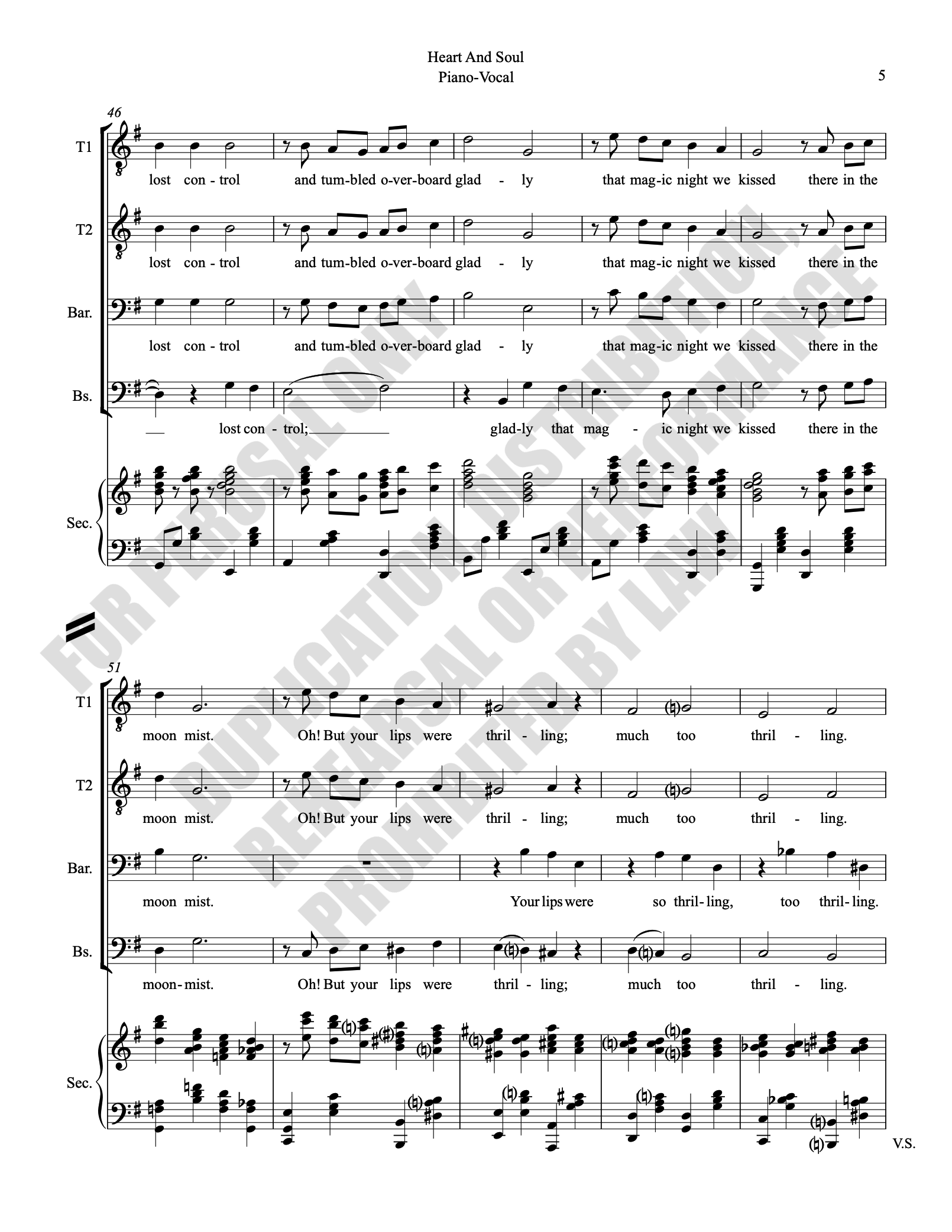 from Stardust: the Hoagy Carmichael songbook, this early charmer – co-written by Frank Loesser – was recorded by many well-known artists in the Fifties. Arranged for men’s chorus here, it sports a surprise piano-four-hands break.