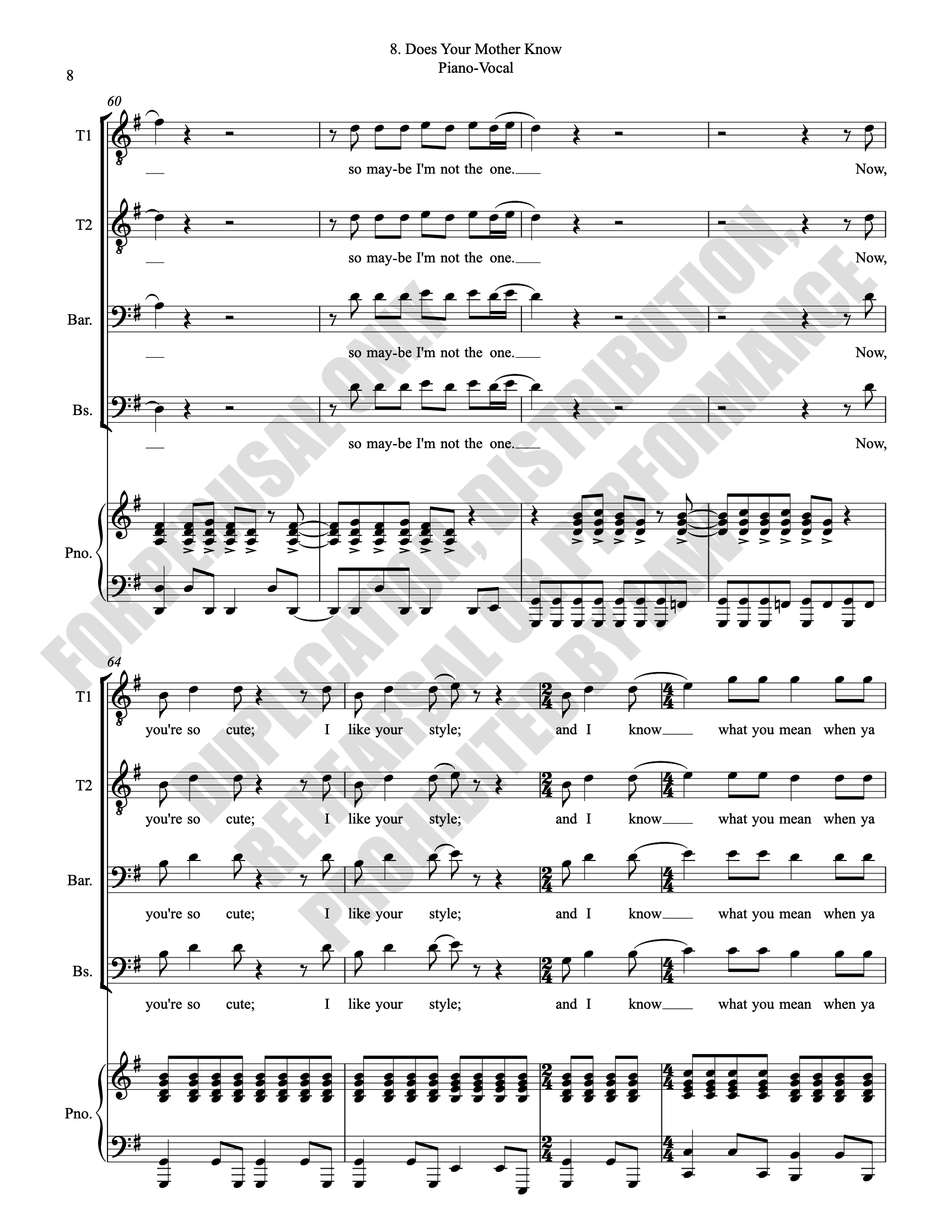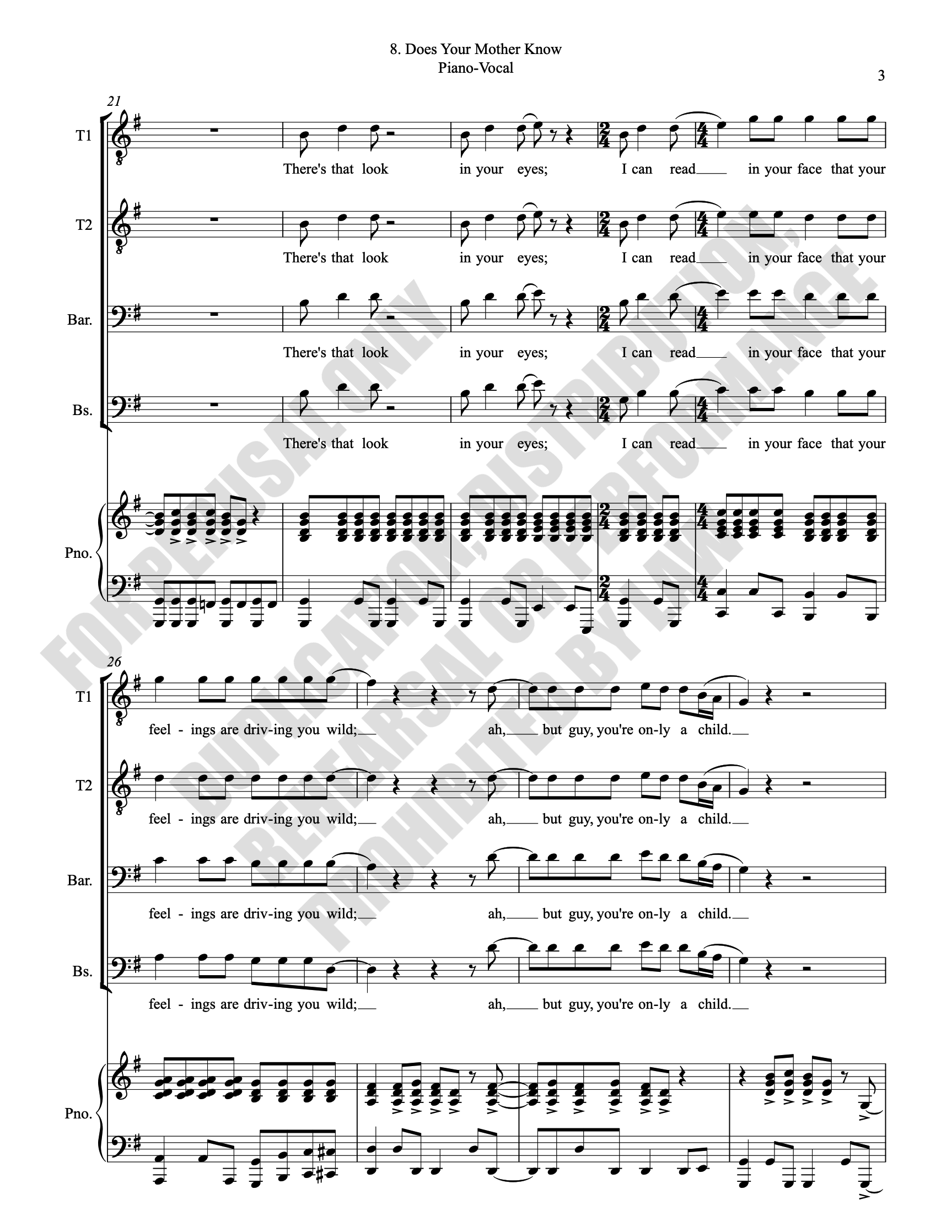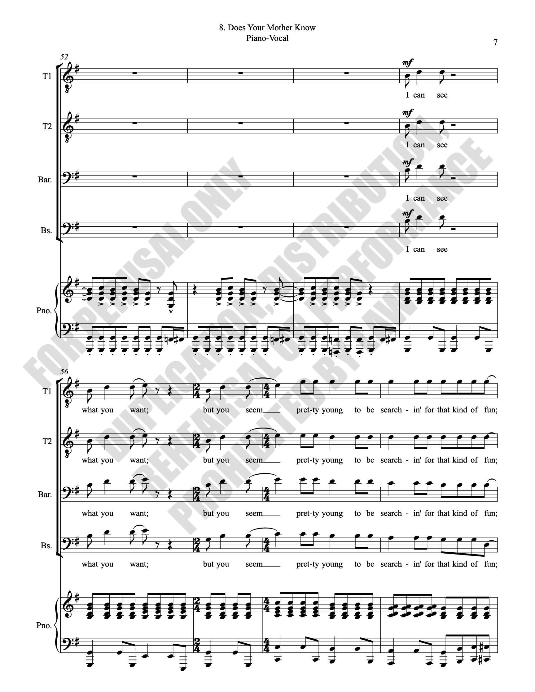Note: Copyright law requires the purchase of one (1) piano-vocal copy per singing individual, inclusive of conductor and accompanist. Enter the number of performers under Quantity when ordering.