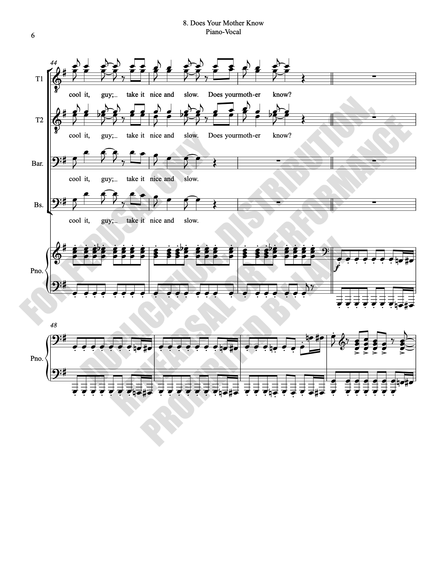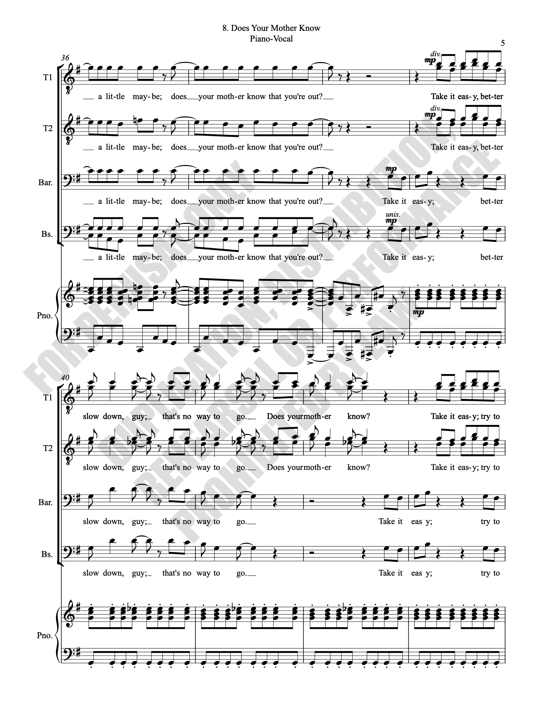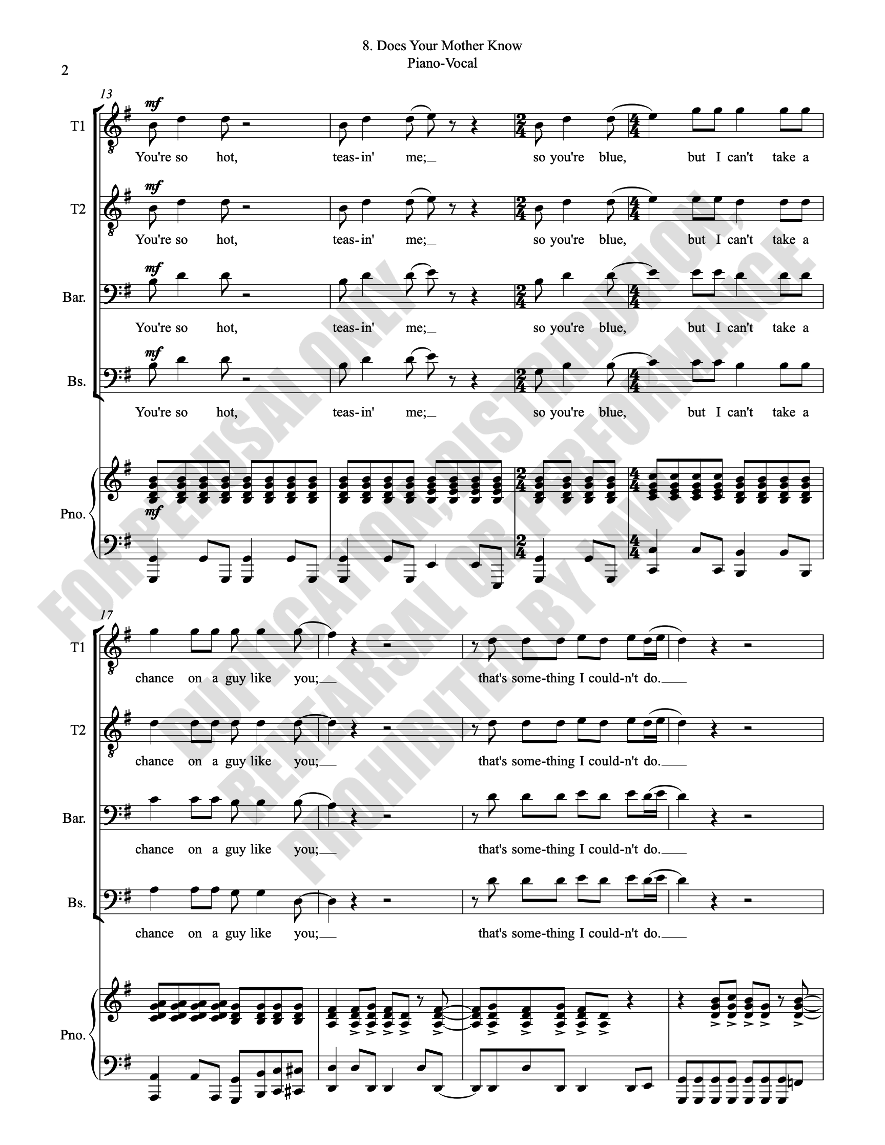 Note: Copyright law requires the purchase of one (1) piano-vocal copy per singing individual, inclusive of conductor and accompanist. Enter the number of performers under Quantity when ordering.