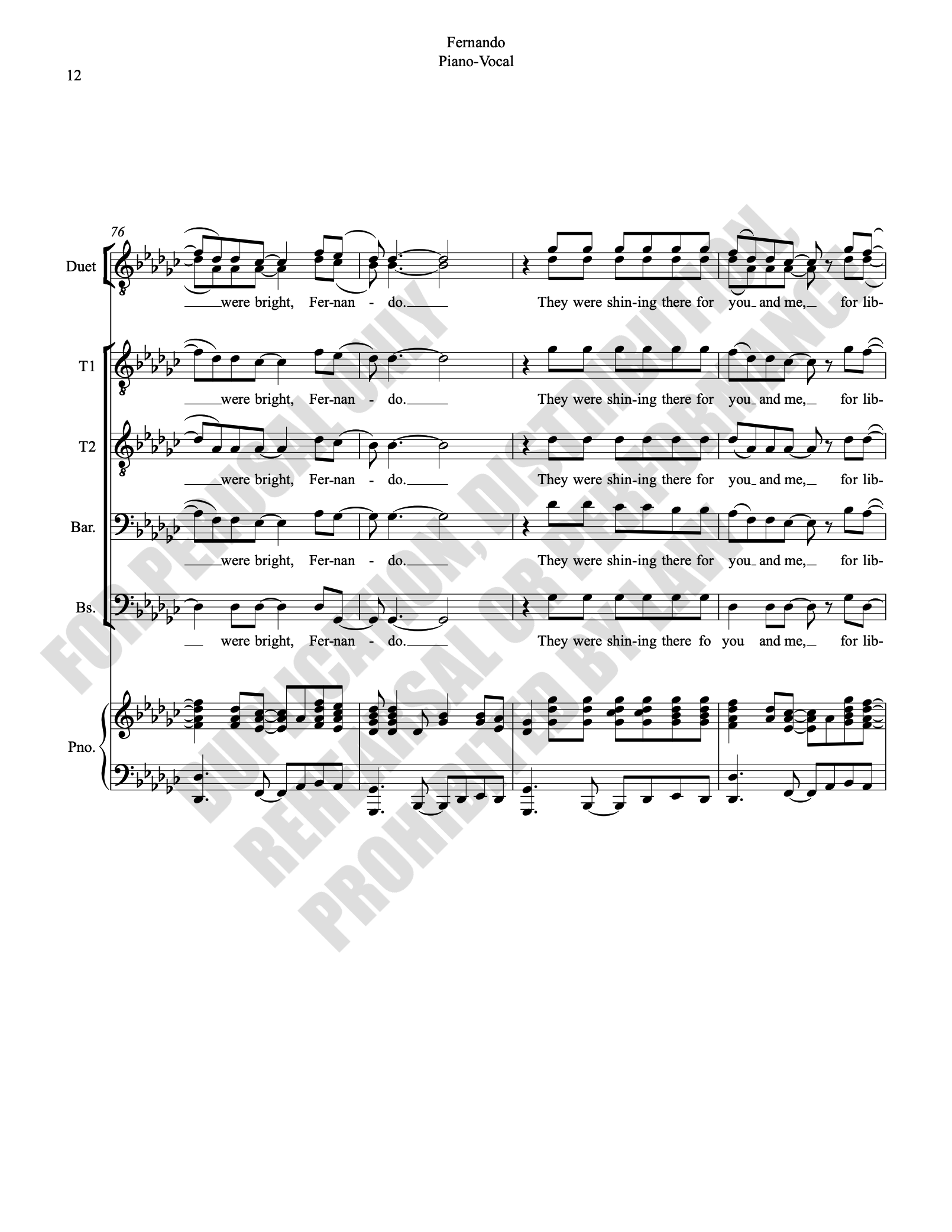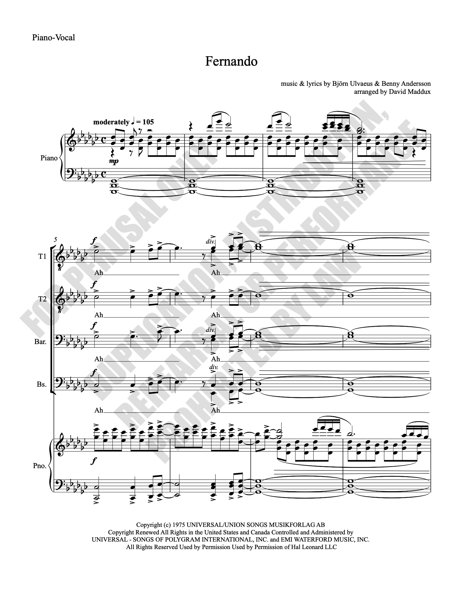 Note: Copyright law requires the purchase of one (1) piano-vocal copy per singing individual, inclusive of conductor and accompanist. Enter the number of performers under Quantity when ordering.