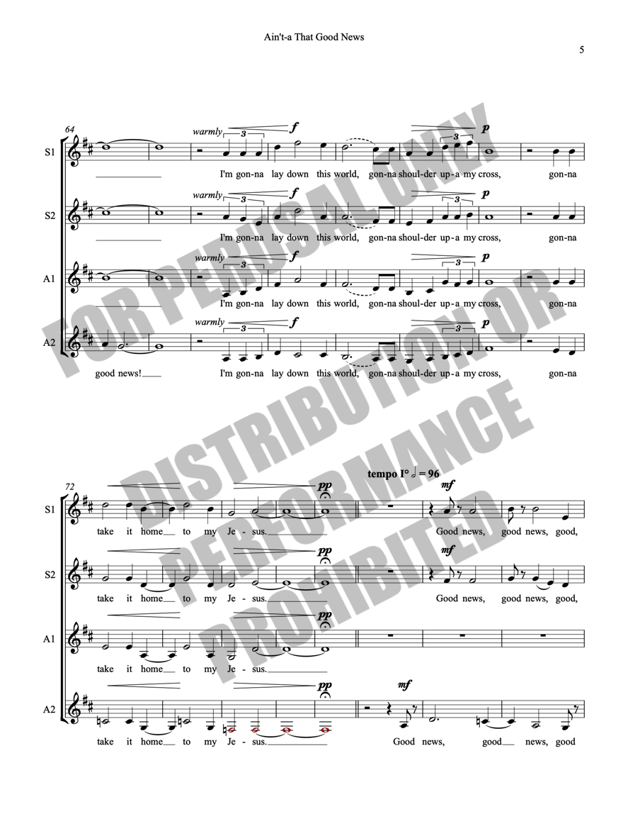 Modern in its a cappella setting, this venerable spiritual takes on new life for your SSAA chorus.