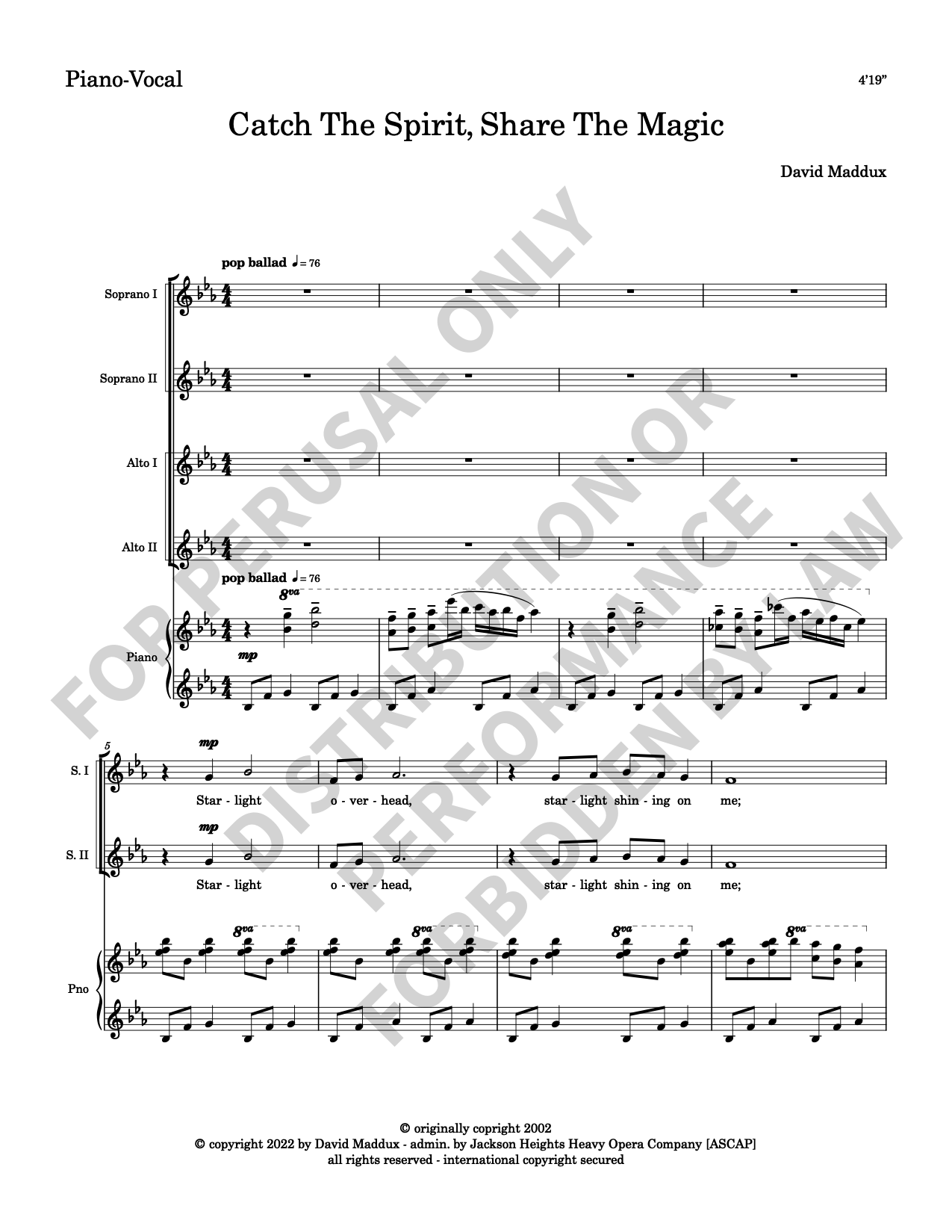 Note: Copyright law requires the purchase of one (1) piano-vocal copy per singing individual, inclusive of conductor and accompanist. Enter the number of performers under Quantity when ordering.