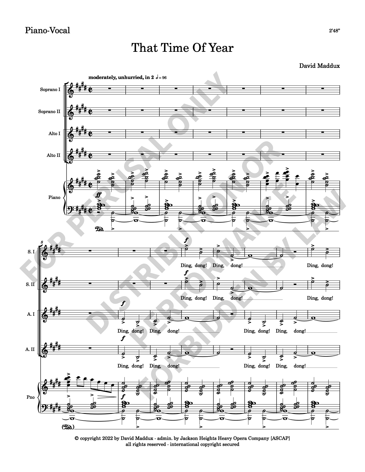 Note: Copyright law requires the purchase of one (1) piano-vocal copy per singing individual, inclusive of conductor and accompanist. Enter the number of performers under Quantity when ordering.