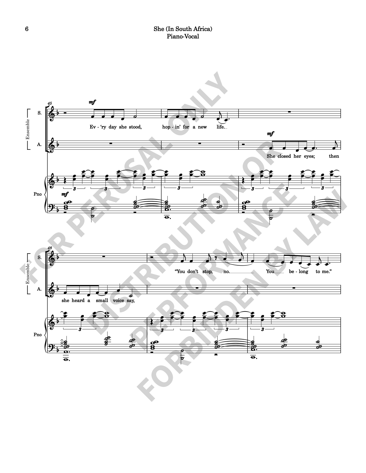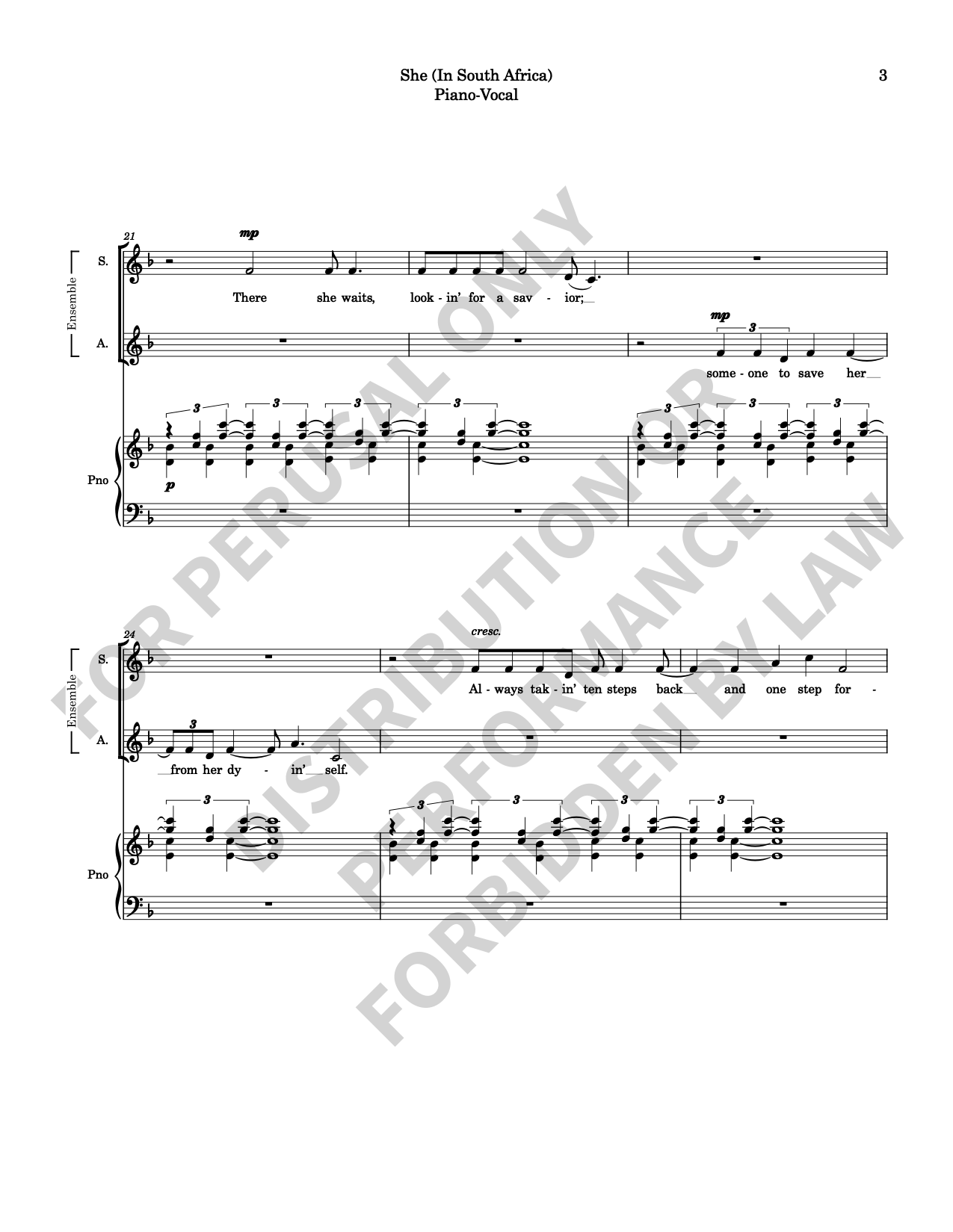 Note: Copyright law requires the purchase of one (1) piano-vocal copy per singing individual, inclusive of conductor and accompanist. Enter the number of performers under Quantity when ordering.