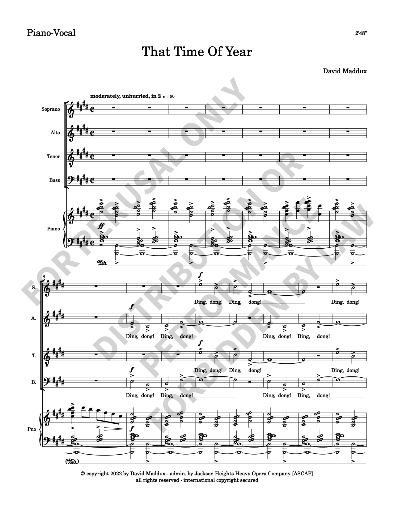 Note: Copyright law requires the purchase of one (1) piano-vocal copy per singing individual, inclusive of conductor and accompanist. Enter the number of performers under Quantity when ordering.