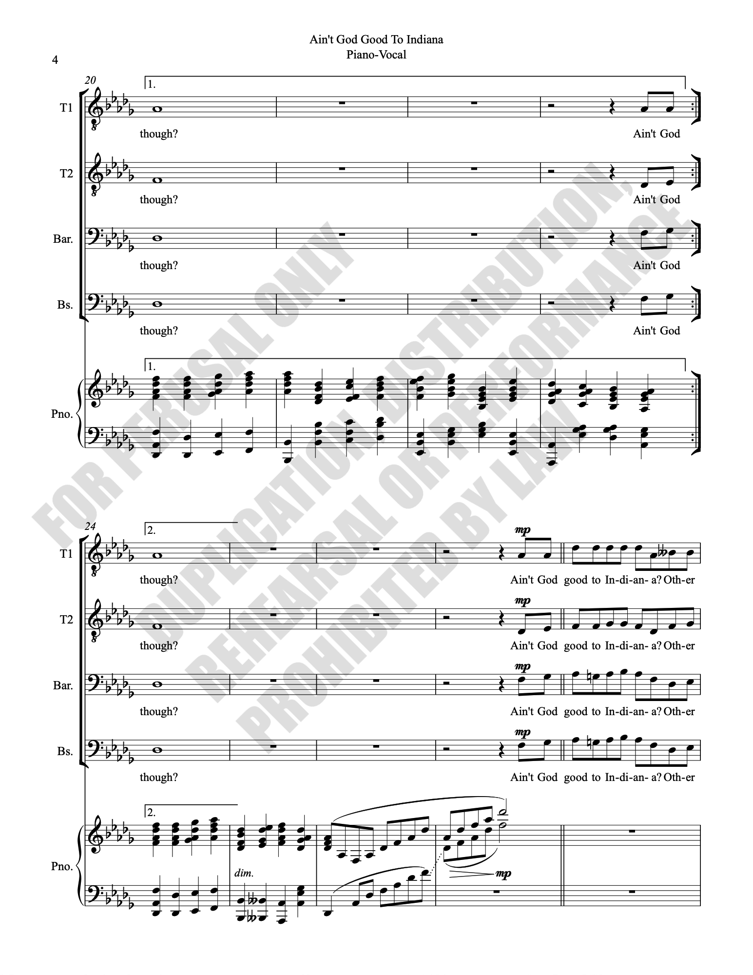 Note: Copyright law requires the purchase of one (1) piano-vocal copy per singing individual, inclusive of conductor and accompanist. Enter the number of performers under Quantity when ordering.