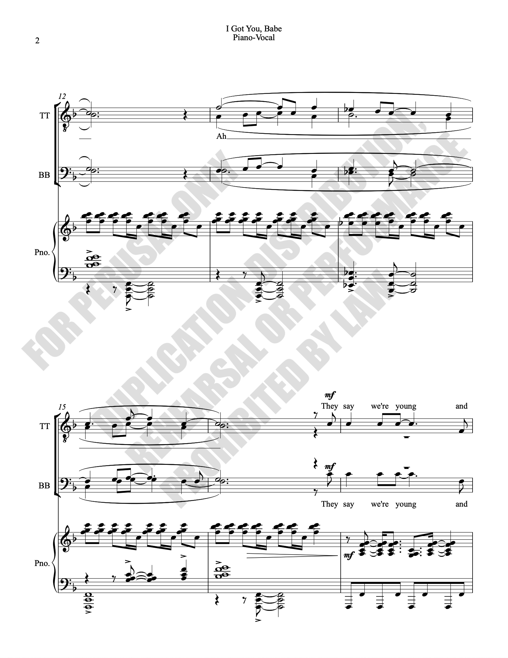 Note: Copyright law requires the purchase of one (1) piano-vocal copy per singing individual, inclusive of conductor and accompanist. Enter the number of performers under Quantity when ordering.