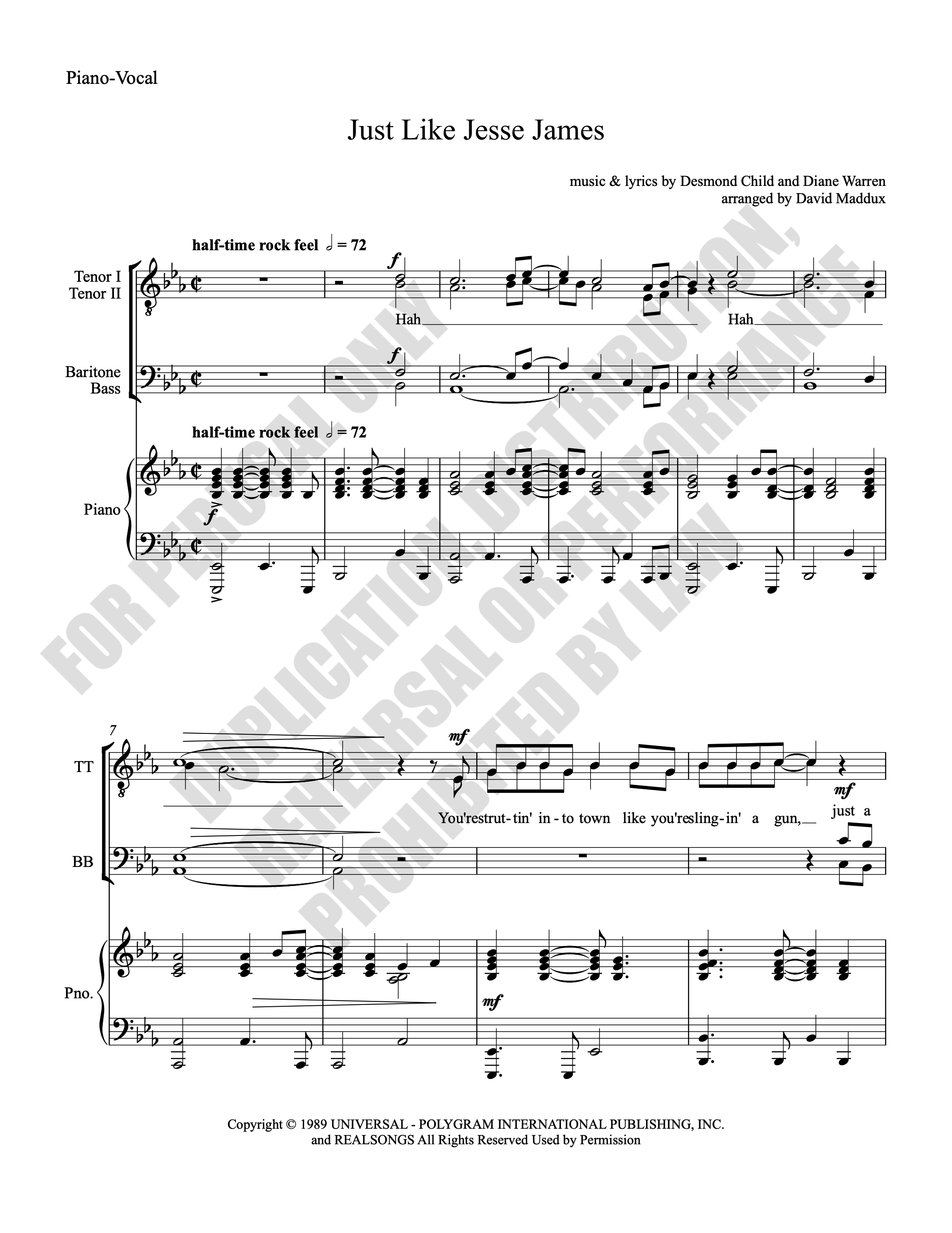 From the full-concert revue Bang! Bang!: the Music of Cher, one of the timeless icon’s most popular hits, arranged for men's chorus.