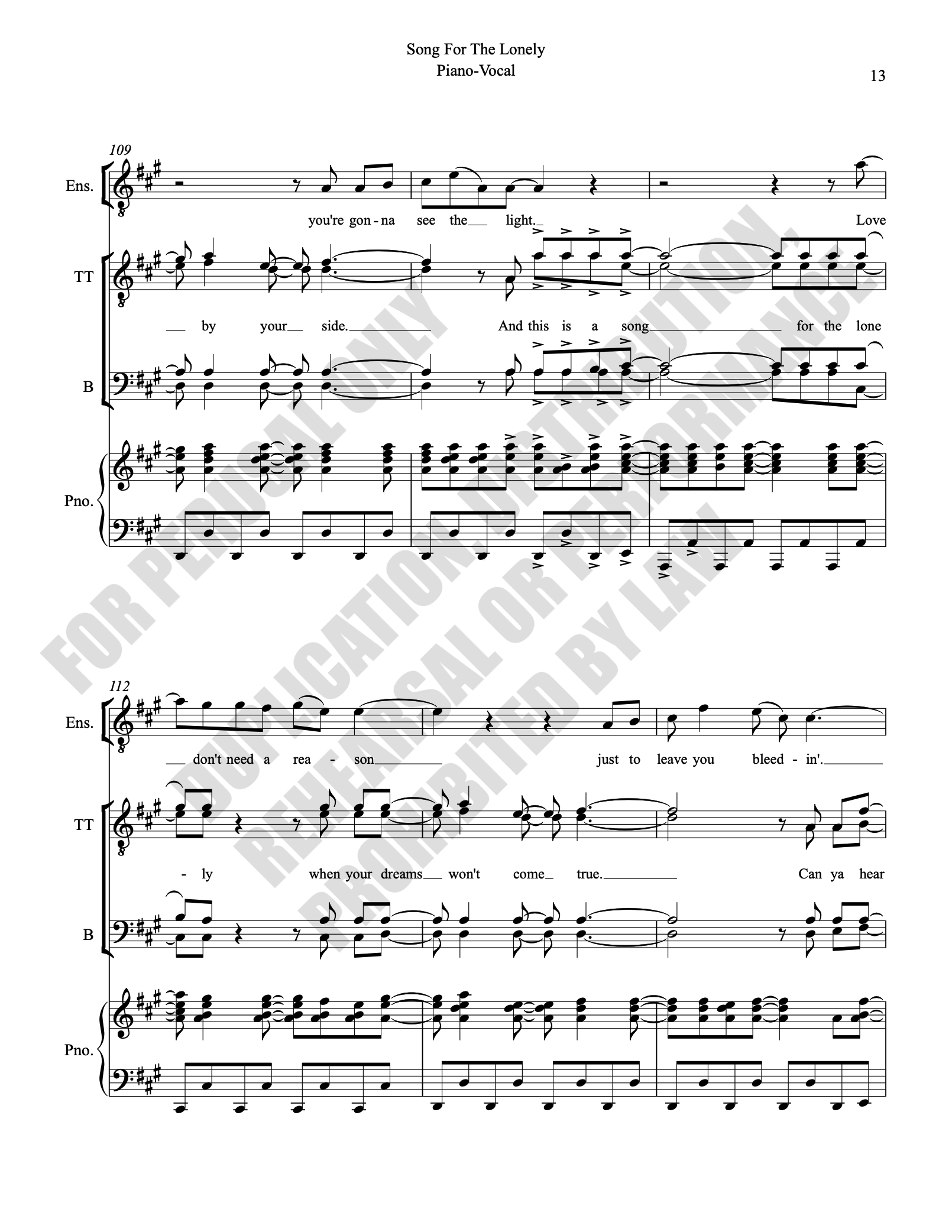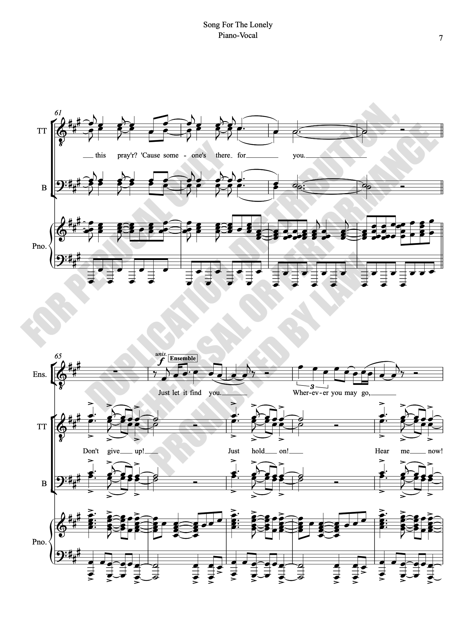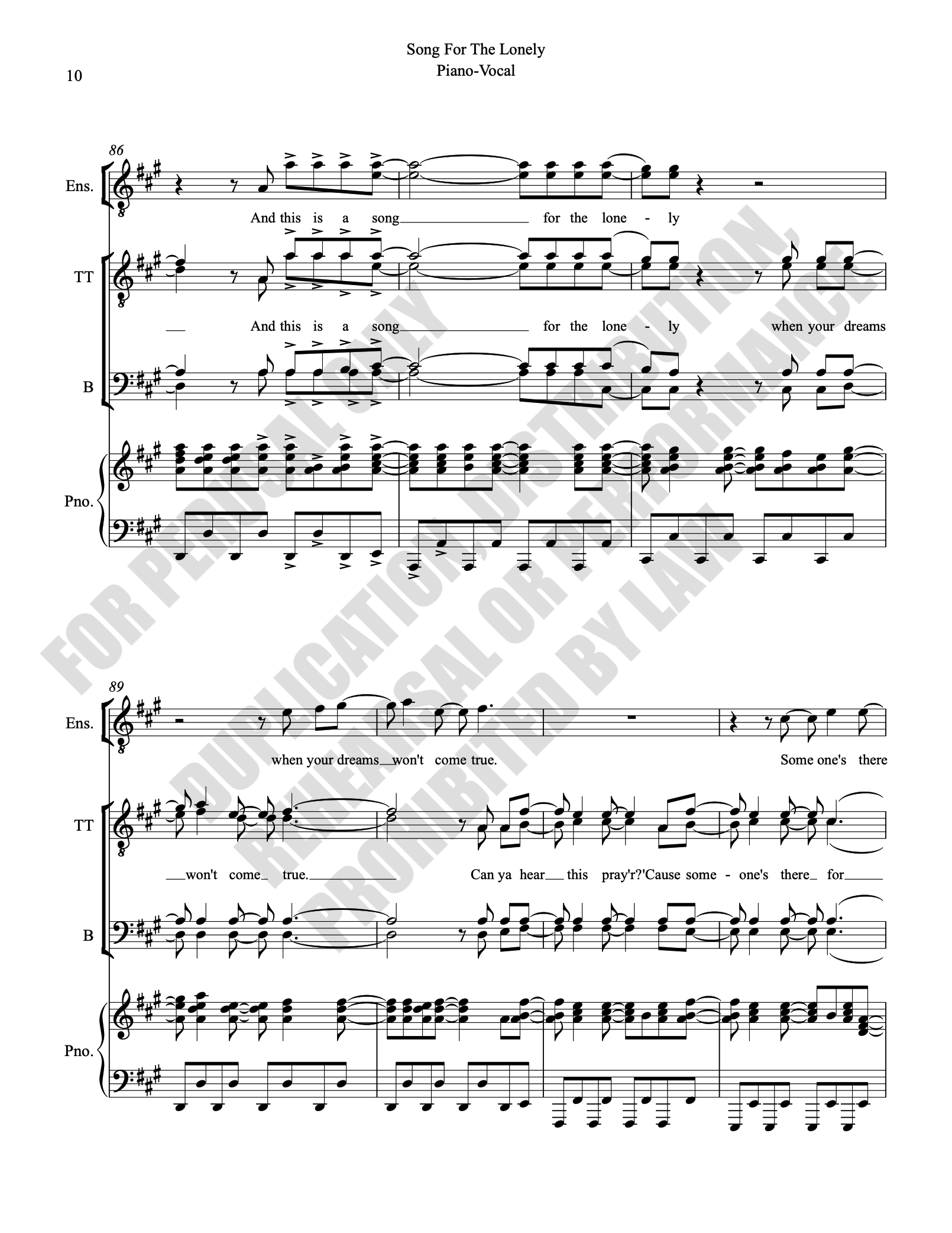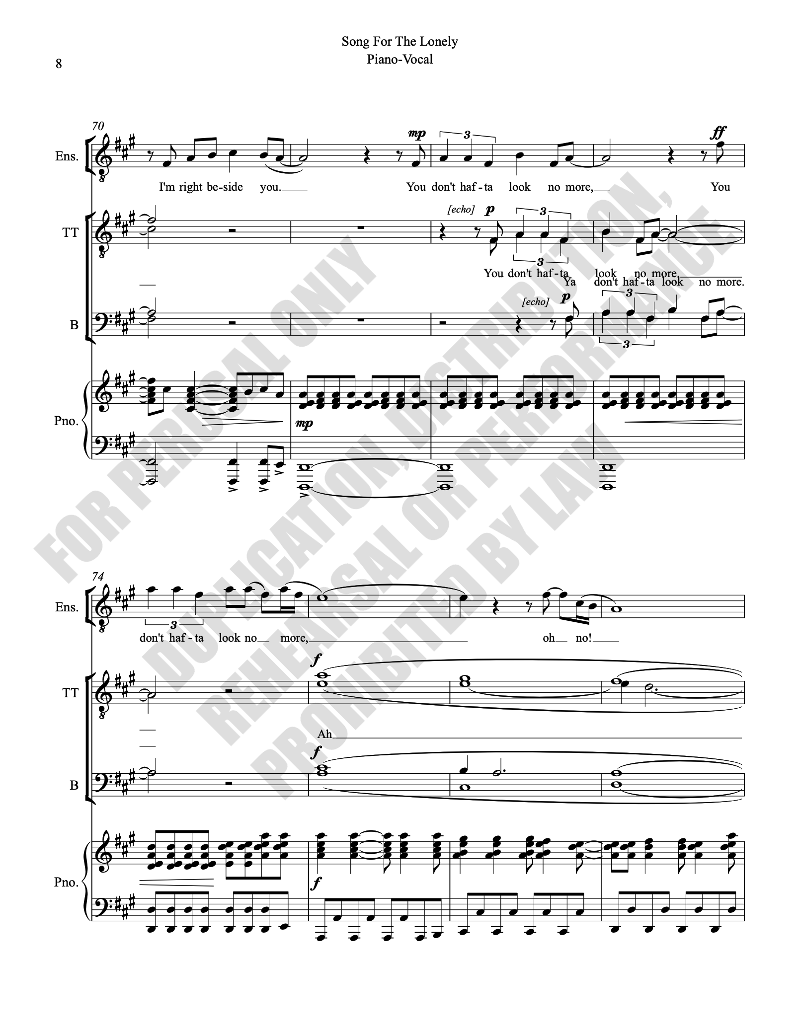 Note: Copyright law requires the purchase of one (1) piano-vocal copy per singing individual, inclusive of conductor and accompanist. Enter the number of performers under Quantity when ordering.