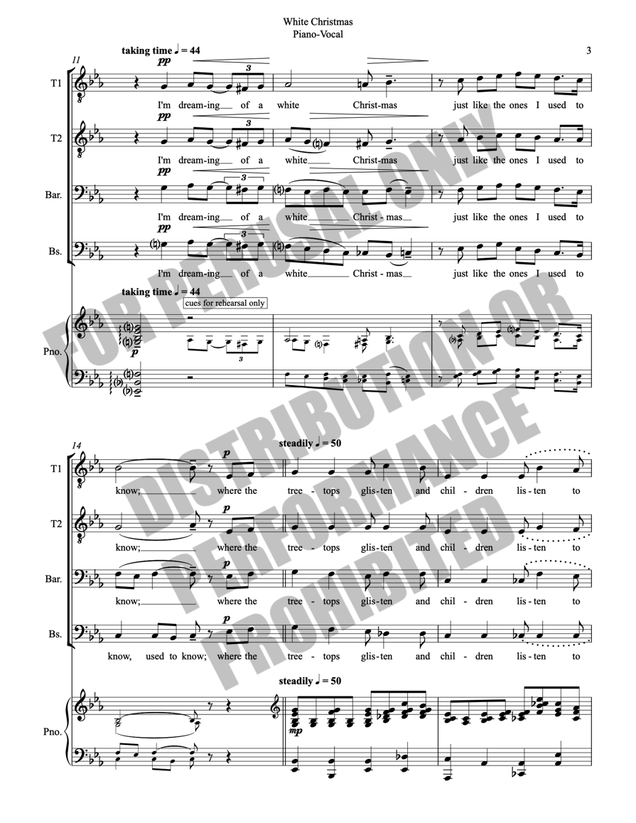 Note: Copyright law requires the purchase of one (1) piano-vocal copy per singing individual, inclusive of conductor and accompanist. Enter the number of performers under Quantity when ordering.