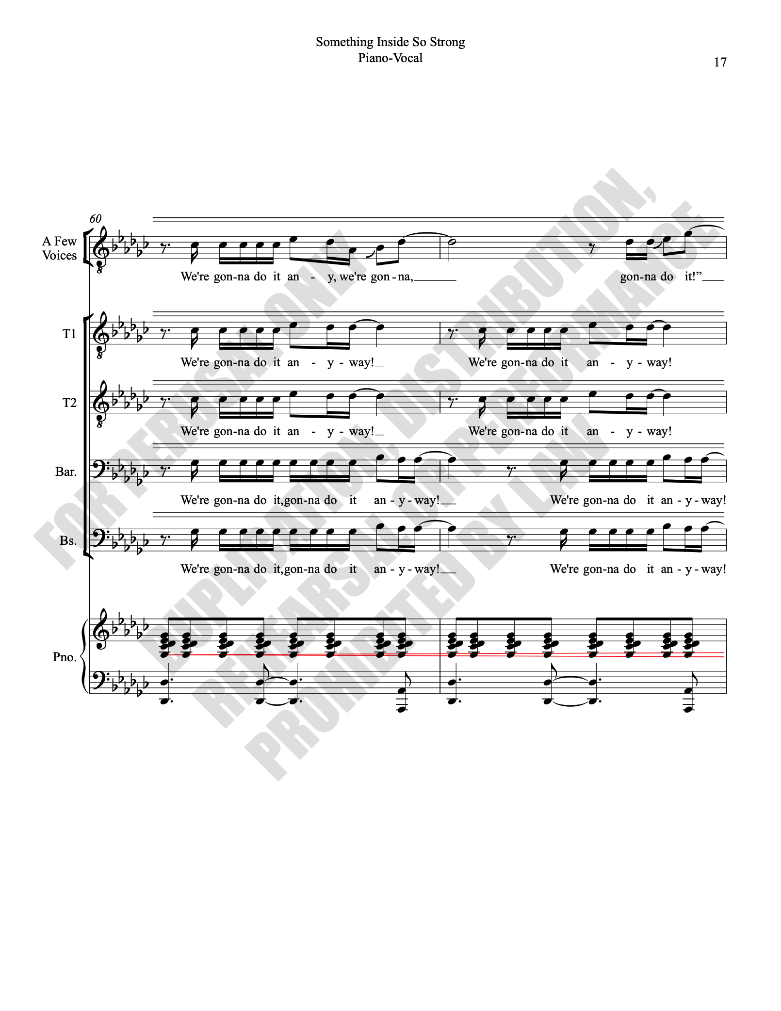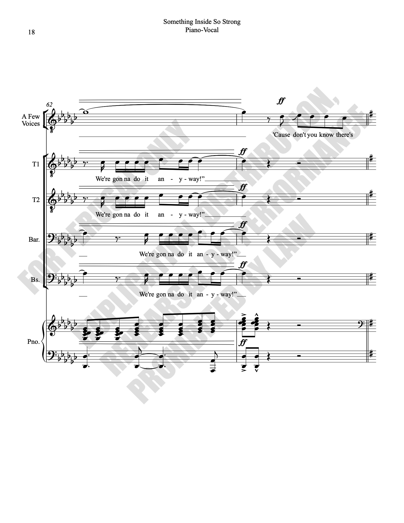 Note: Copyright law requires the purchase of one (1) piano-vocal copy per singing individual, inclusive of conductor and accompanist. Enter the number of performers under Quantity when ordering.