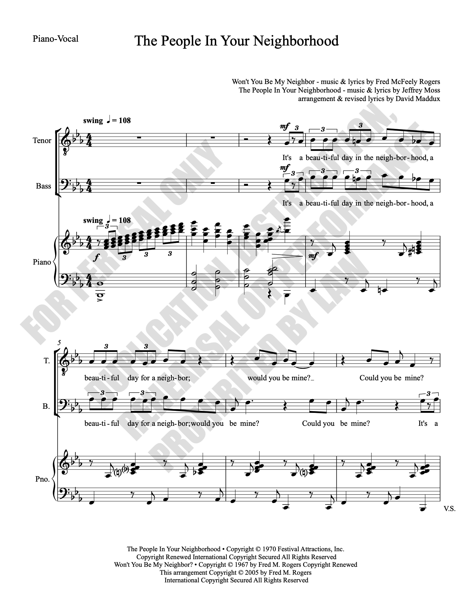 Note: Copyright law requires the purchase of one (1) piano-vocal copy per singing individual, inclusive of conductor and accompanist. Enter the number of performers under Quantity when ordering.