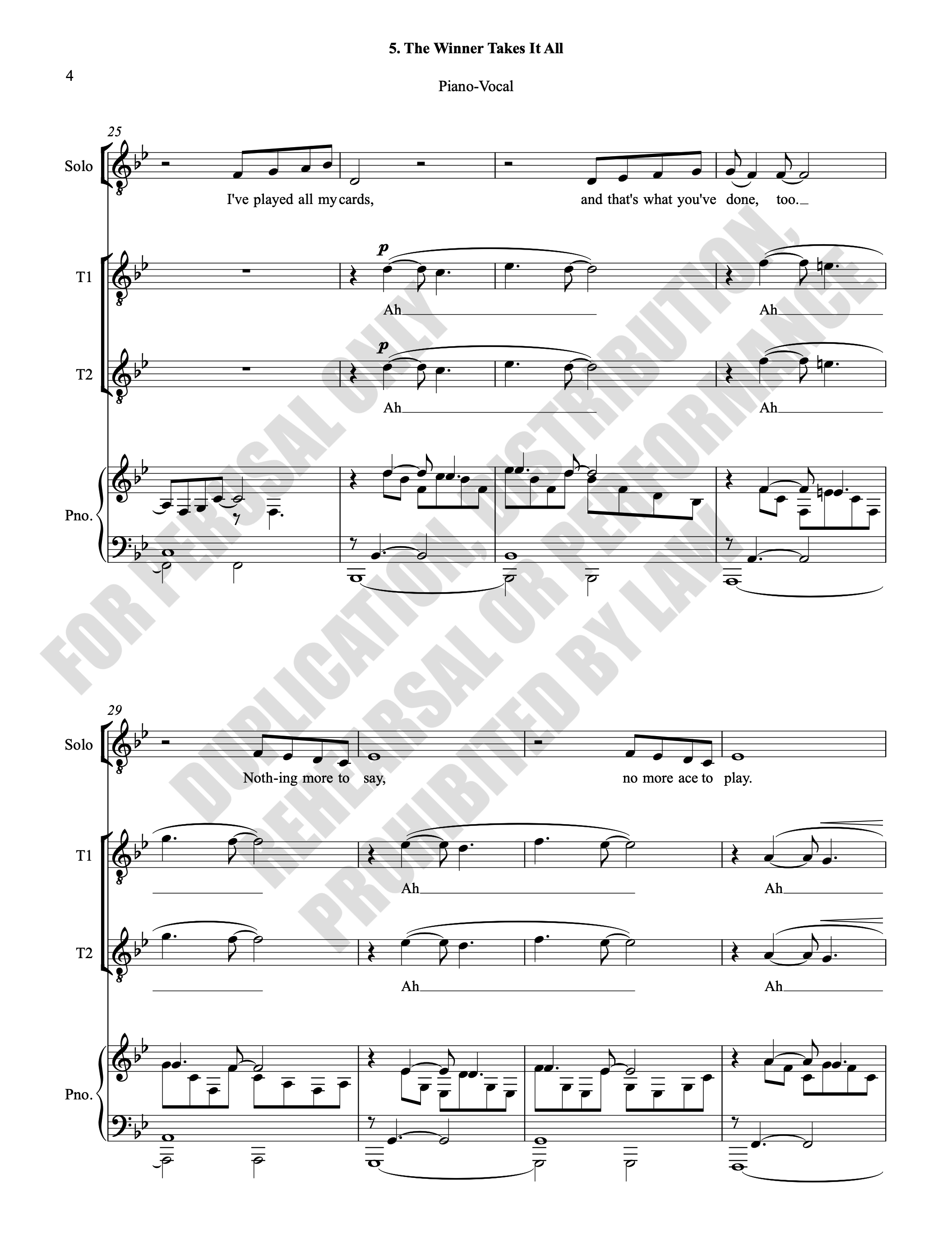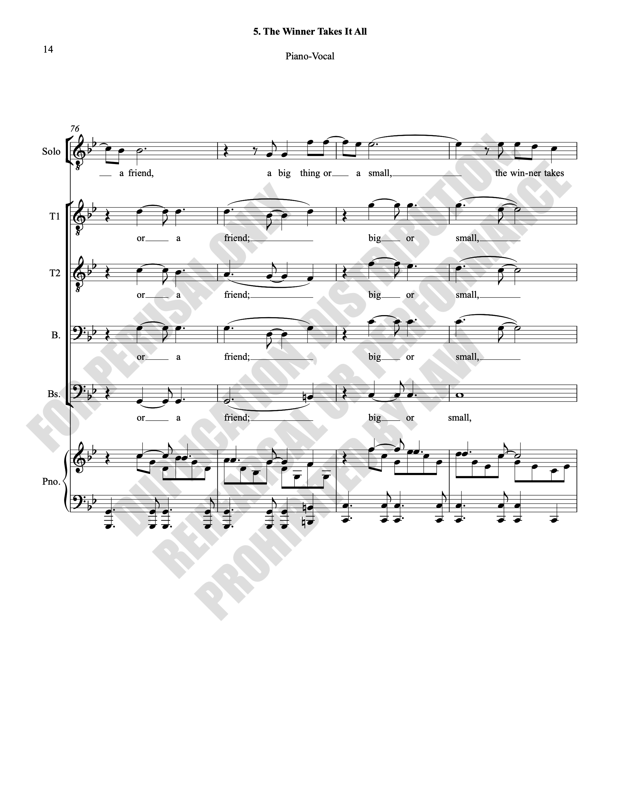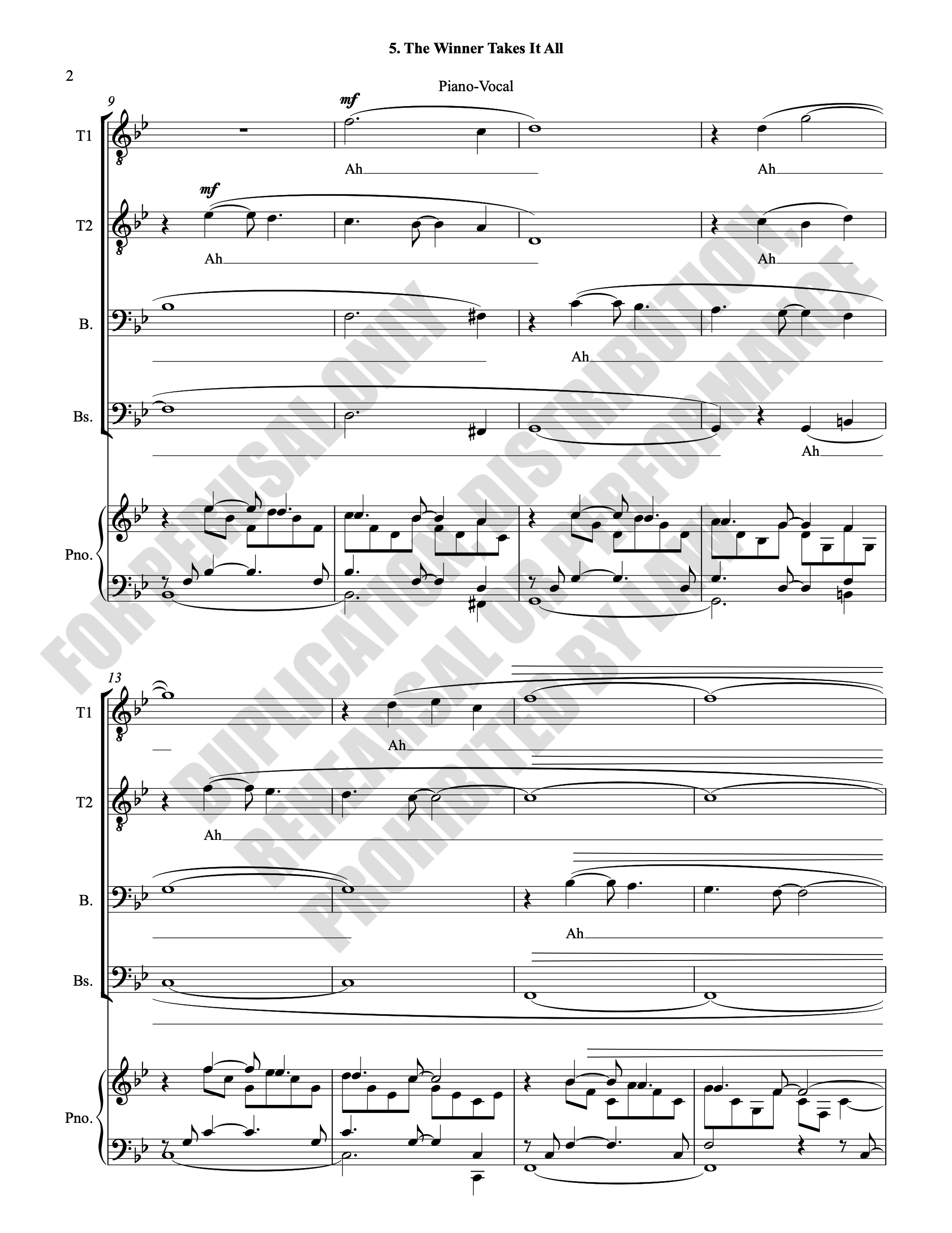 Note: Copyright law requires the purchase of one (1) piano-vocal copy per singing individual, inclusive of conductor and accompanist. Enter the number of performers under Quantity when ordering.