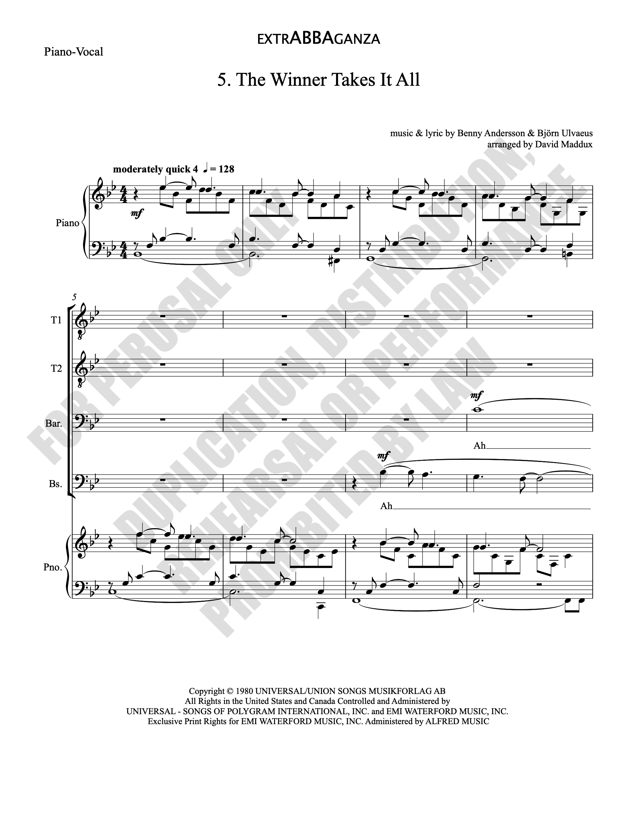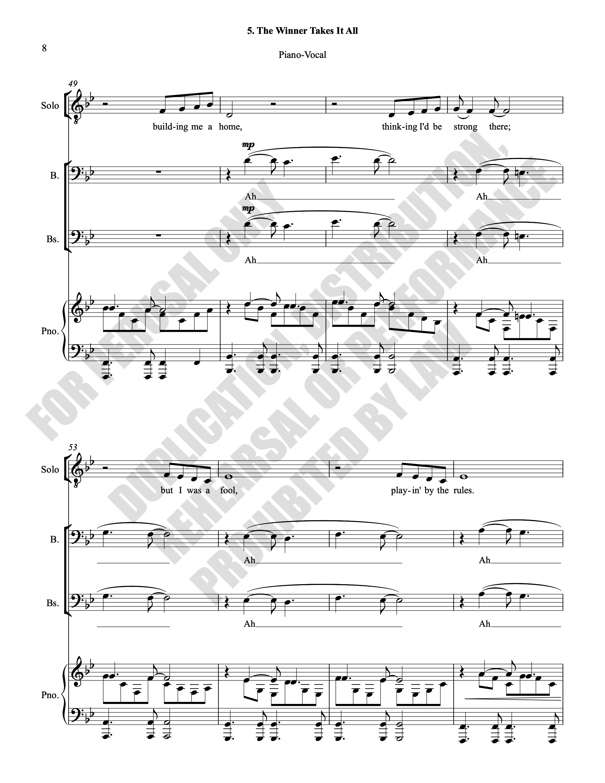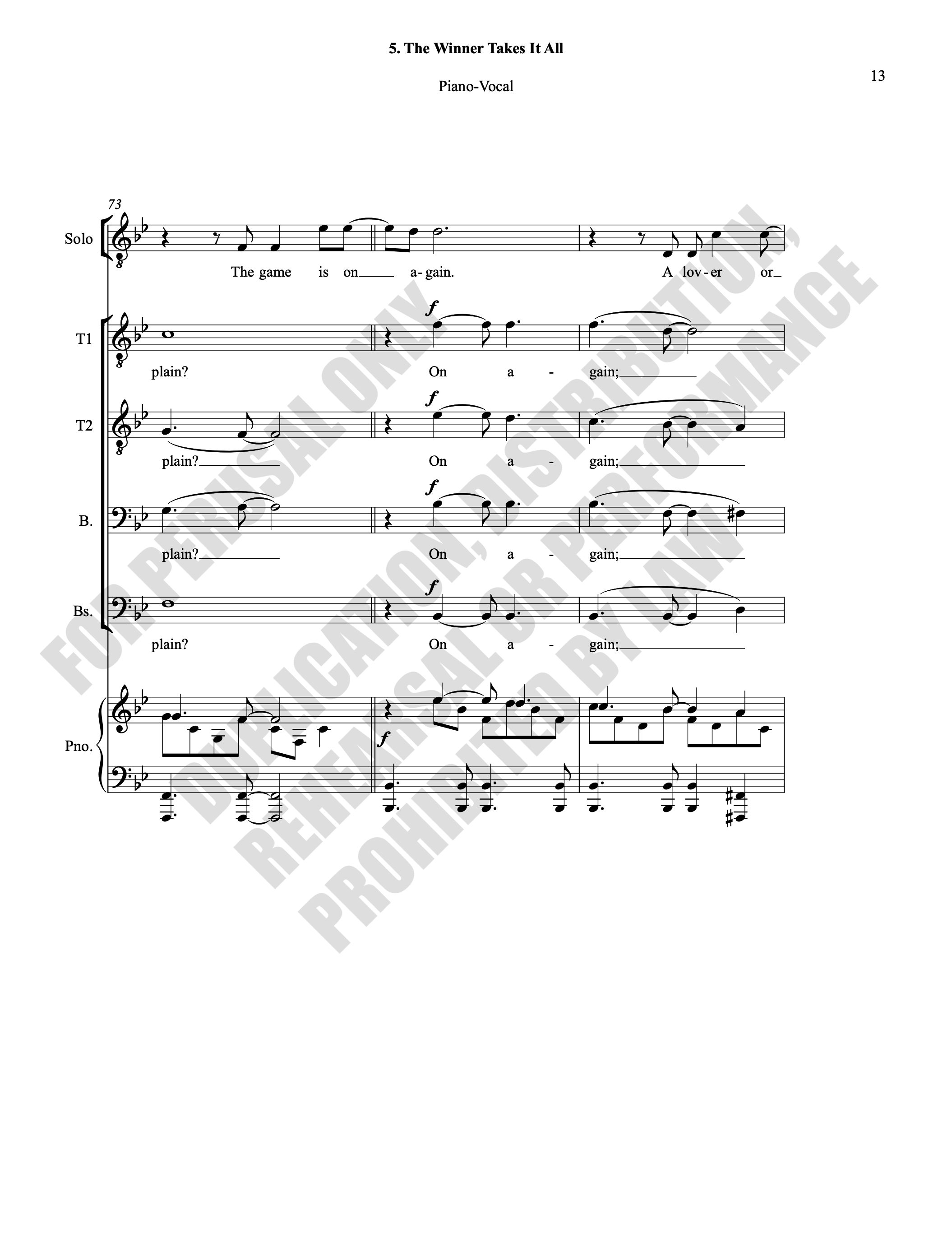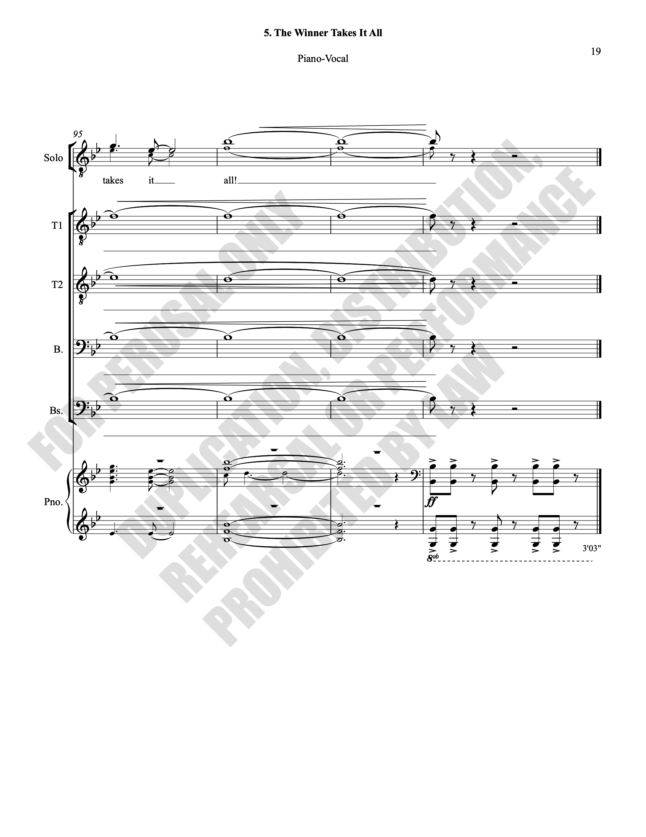 Note: Copyright law requires the purchase of one (1) piano-vocal copy per singing individual, inclusive of conductor and accompanist. Enter the number of performers under Quantity when ordering.