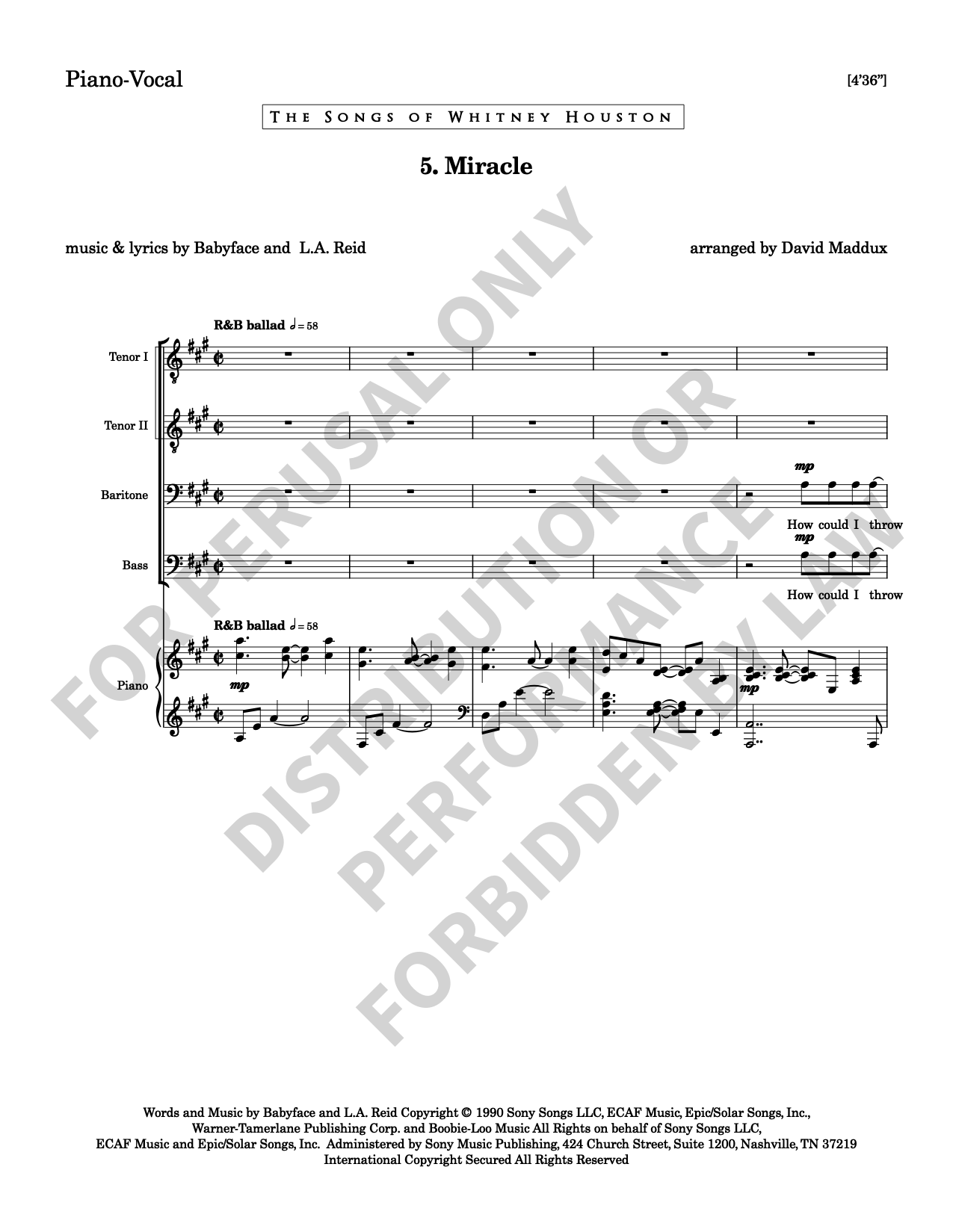Set here for men's chorus, Whitney's Miracle captures the original sparkle.